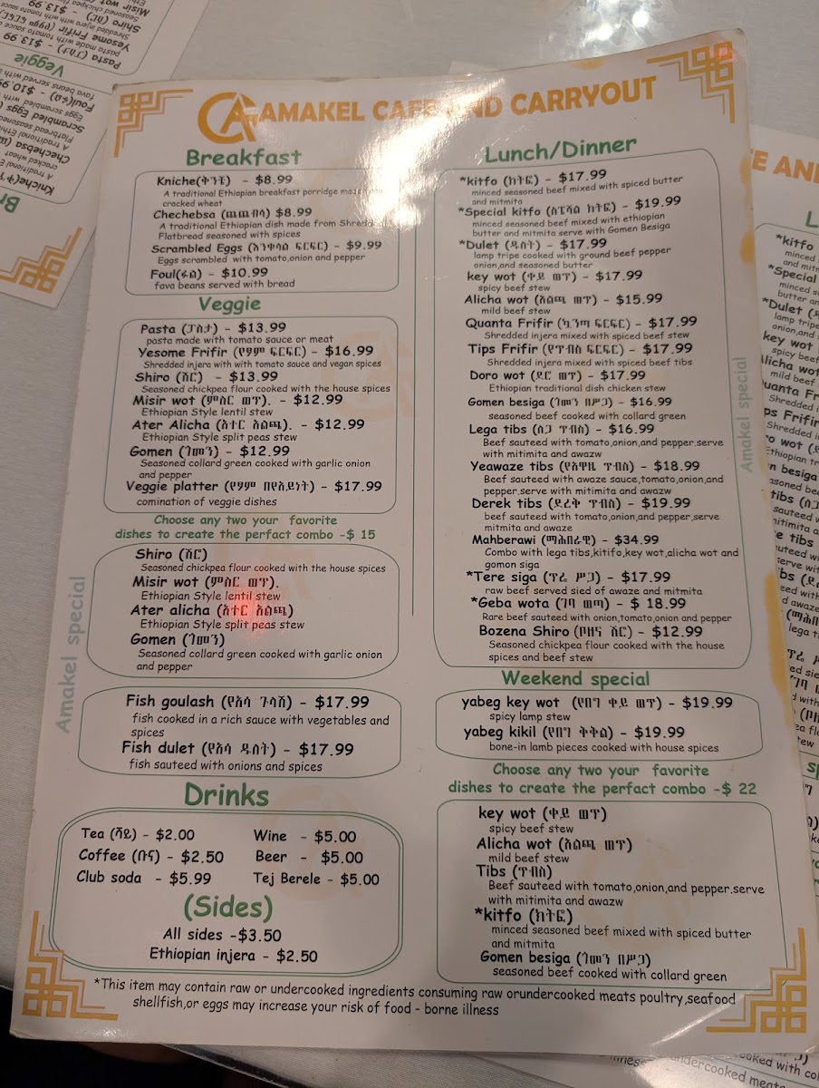 Introducing the Menu at Amakel Cafe and Carryout